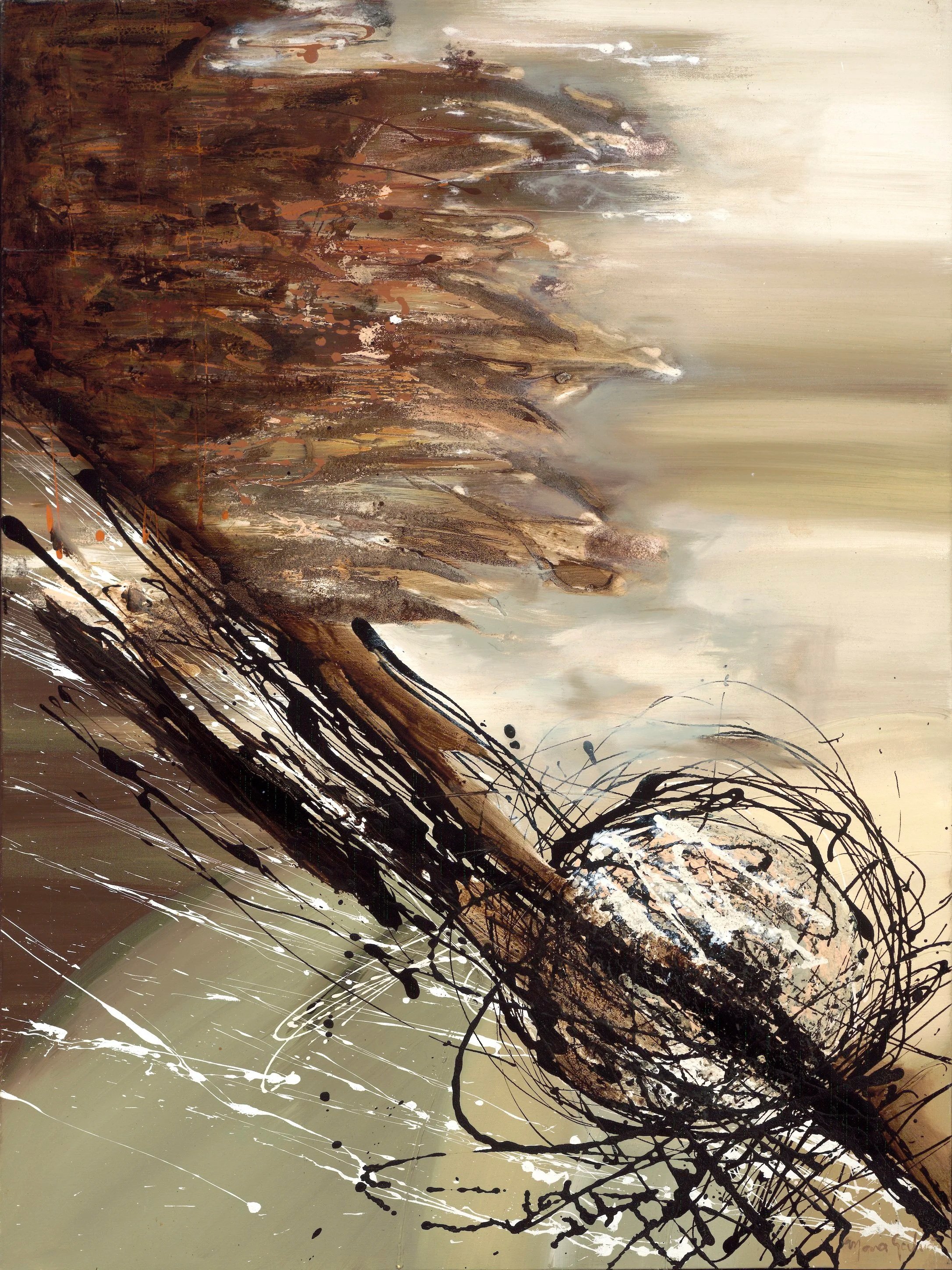 The Earthly series was inspired by my childhood, growing up in Brazil. I used to live in a small town with unpaved streets and have memories of walking barefoot, feeling and seeing the deep red powdered earth underneath my feet, warm and soft between my toes. It made me feel alive! There were so many textures around me from the beaches, sand, shells to the trees, rocks, rivers, and fibers from the palm and coconut trees. This influenced me to use lots of textures in this series, including marble powder, Brazilian coffee grounds and sawdust.